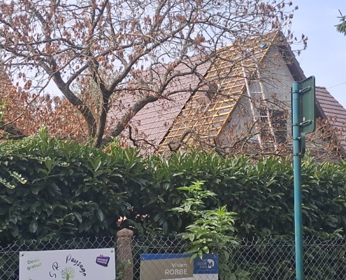 Ce chantier neuf a permis de créer une structure solide, durable et parfaitement adaptée à l’architecture du bâtiment. De la fabrication de la charpente à la mise en place des matériaux de couverture, chaque étape a été effectuée avec soin pour garantir une toiture fiable, esthétique et conforme aux normes en vigueur.