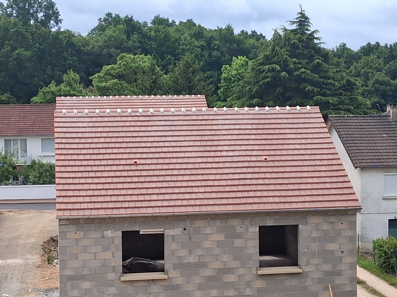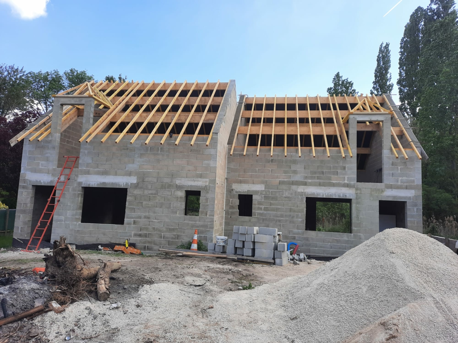 Ce chantier neuf a mobilisé tout notre savoir-faire : création d’une structure solide et durable, installation d’une couverture parfaitement étanche et finition soignée dans le respect des normes en vigueur.